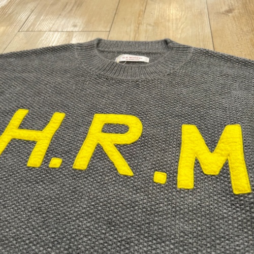 ふっくらとした組織で編立てたニットにHRMのワッペンをレタリングしたプルオーバー。柔らかなウール糸を使用し軽く温かみのある編立てとなっています。レタリングしたワッペンは洗いをかけ、風合いを出しています。程よくゆとりを持ったナチュラルフィットです。