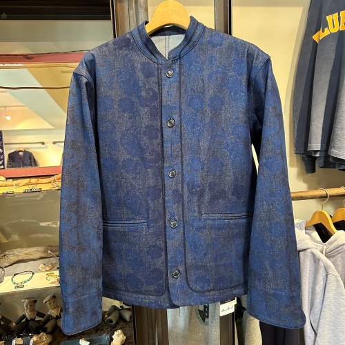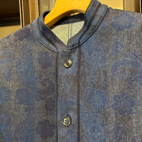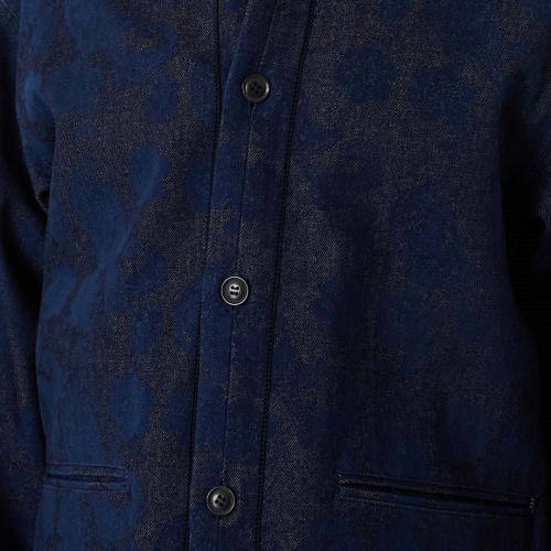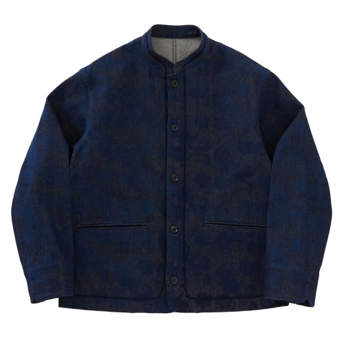ブレードディテールがポイントのラフに着られるスタンドカラージャケットです。ベースには12オンスのインディゴデニムを使用、オープンエンド紡績糸を使用することでざっくりとした表情とドライ感があります。このデニムをベースに、2色の濃淡の本藍で、テーマである辻が花をイメージした着抜プリントを施しました。着るほどに変わっていくデニムの表情と藍の色をお楽しみください。身頃は程よい分量感のストレートシルエットです。アンティークのチロリアンジャケットをベースにブラッシュアップしたスタイルです。フロントには切り替え利用のボタンホールや、ブレードでトリミングと古着のようなディテールがお勧めです。