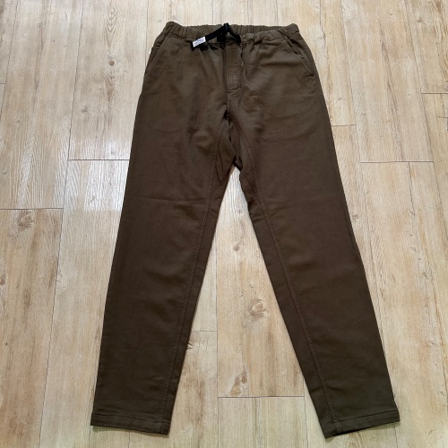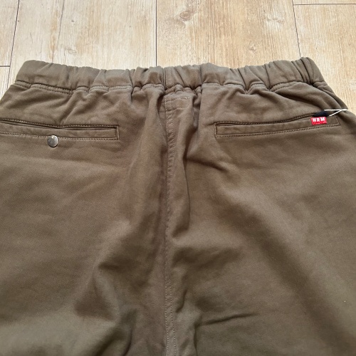 生地の特徴であるストレッチ性を再考慮し、デザインをアップデーしたアクティビティーパンツです。スウェットの様な風合い、秋口から春先に適したストレッチ機能を持つ素材。裏面はパイル起毛が施されており肌触りがよく、ウォーム感がありながら蒸れにくいところが特徴です。スウェット素材のようなストレッチ性、稼働域が十分な素材特徴から、生地の剥いでいる分量、ダーツなどを最小限に抑えた仕様です。ウエストバックルはオリジナルのHがさり気なく刻印されているのも特徴です。