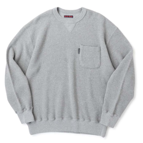 ストライプ状に広がる凹凸が特徴の生地で作ったシンプルなポケットスウェット。「ブリスター」といわれるランダム感のある凹凸がストライプ状に広がる特殊な素材。表はボコボコと表情豊かですが、肌にあたる内側はフラットで綺麗に表面を整えた、コーマ糸を使用しているので優しい肌触りです。前Vガゼットのヴィンテージディテールのスウェットの形に特徴のある素材を合わせました。ディテールとシルエットはベーシックですが、特徴のある素材を採用することで新鮮な見え方となっています。