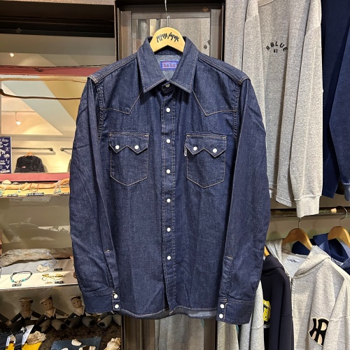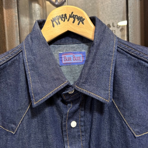 カウボーイたちが着用していたシャツがルーツのウエスタンシャツ。そのディテールを基本に現代的なデザインに見直し、復刻しています。スナップボタンやステッチ、ポケットのデザインなど、細部にこだわりが感じられるオリジナルウエスタンシャツ。デニム本来の濃色を残した色合いは大人のカジュアルスタイルを演出し、体に馴染んでくる経年変化も魅力です。「ST814」は改良を重ねながら作り続けてきた「BLUE BLUE」を代表するウエスタンシャツです。