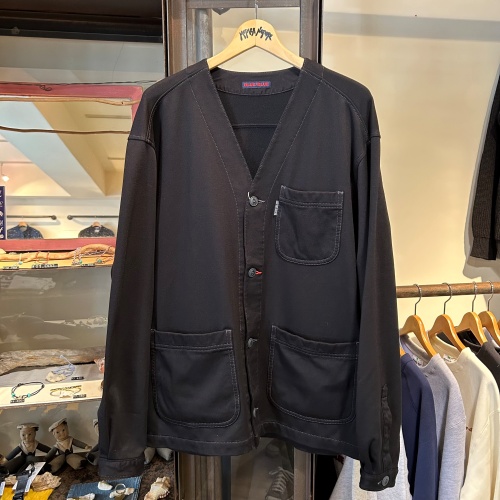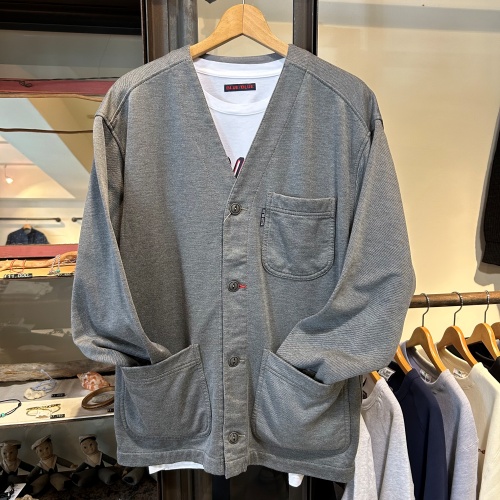 上品なツイル地のような印象のジャージ生地で仕立てたカーディガンです。レーヨンとナイロンを交編したジャージ素材です。エレガントな印象のツイル地のようでありながら、ジャージならではの着やすさと動きやすさを兼ね備えています。肌に触れる部分は裏起毛で、非常に繊細で柔らかなタッチとなっています。長時間の着用でもストレスフリーで、安心感のある着心地です。レギュラーフィットシルエット。Tシャツやシャツの上から羽織として、レイヤードスタイルのベストとしてご着用いただける汎用性の高さが魅力です。