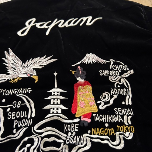 スカジャンとダウンを組み合わせた、スカジャン風リバーシブルダウンジャケット。保温性の高い800FPのダウンを使用し、軽くて柔らかな着心地を実現。肩まわりや身幅にややゆとりをもたせたシルエットで、インナーに厚手のトップスを合わせてももたつかず、ストレスなく羽織れます。表側は、毛羽のあるベロア素材にスカジャン刺繍を、裏側は、ダイヤキルトダウンジャケットで、気分やコーデに合わせて楽しめるリバーシブル仕様に仕上げました。個性的なデザインと、日常で使える実用性を両立した、ダウンウェアです。少し大きめに着用いただくスカジャンです。
