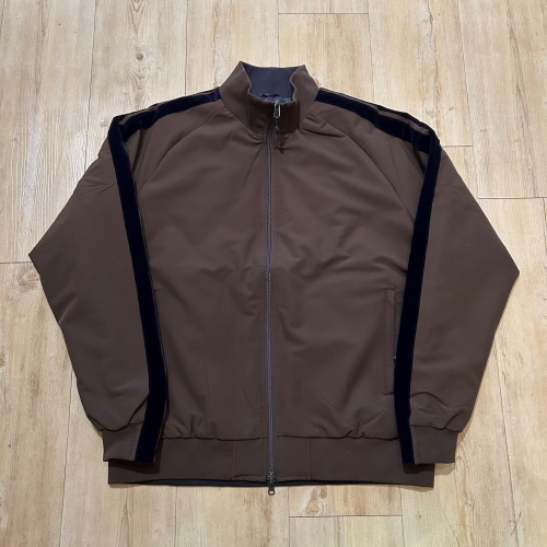 ジャパンスペシャルの、ジャージタイプのリバーシブルトラックジャケット。両脇には渋い光沢感のあるベロア生地のラインを配置。表側はスポーティーなアクセントになる配色ライン、裏側は落ち着いた同型色で仕上げ、シーンや気分に応じて着回しが可能です。