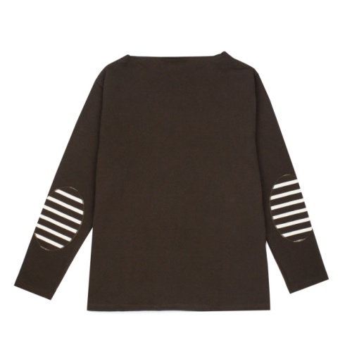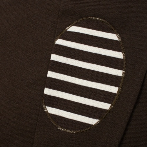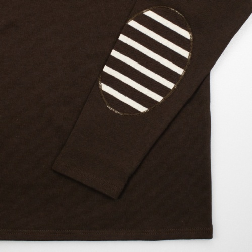 コットン100%の素材、ボートネックのスタイルはウエッソン定番モデルと同じです。同素材のヒジあてパッチは、機能的にもすぐれ、一段とスポーティーなアクセントになっています。洗濯回数や経年数にもよりますが、着丈・袖丈ともに縦に2センチ前後縮みます。またすべて先染めの糸によるジャージーのため染色時間の違いにより、同サイズ表示のシャツでも色によって若干(1センチ前後)サイズの違い、洗濯による縮み具合が異なる場合がありますのでご了承下さい。