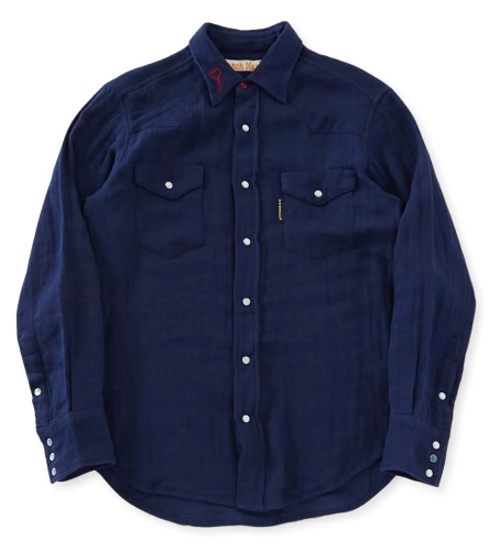 インドで作成した、オリジナルダブルガーゼ仕立てのウエスタンシャツです。表はコットンリネン、裏はコットンを使用し接結で仕上げたダブルガーゼを使用しました。肌に触れる面はコットンのため、柔らかなタッチが心地良い生地です。飽きの来ないベーシックなジャストフィットシルエットです。ナチュラルなゆとりがあるため、一枚ではもちろん、ジャケットとのレイヤードも可能な使いやすい形です。