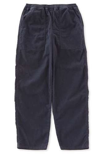 ベイカーパンツをベースにしたオールシーズン着用いただけるリラックスパンツです。ヴィンテージのような使い込まれた味わい深い加工を施しています。夏の定番サマーコーデュロイ生地。染色によるドライ感があり、夏場でも快適です。ウエストはゴム仕様で着脱しやすいイージーな穿き心地。ウエストストリングは内側で納まる様な仕様にしています。