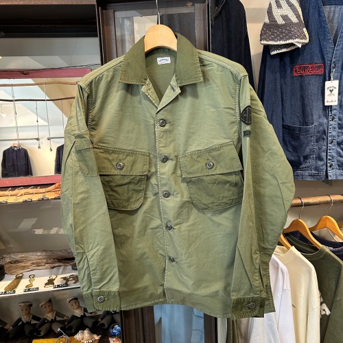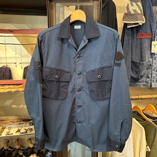 フィールソーグッドシリーズから着回しが効き、ファティーグシャツをベースにモディファイした商品。表地にフィールソーグッドの素材、別布にコットンリップストップとコットンヘリンボーンの3素材を使用。更に製品染めにする事による生地ごとの染めのコントラストが出る雰囲気が味わい深い商品です。また染料の特徴柄、経年変化が出る染料になり使い込むほどに味わいが出てきます。裏面がパイル地になった、吸湿性と通気性に優れたフィールソーグッド素材。とても柔らかい肌触りで着心地が良く、ストレッチ性を持ち合わせています。胸の両サイドのマチ付きのフラップポケット仕様。腰は脇の縫い目利用のポケットを装備。右袖には小さ目のフラップ付きポケット仕様にしています。