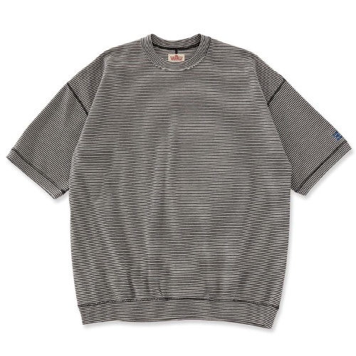 9.5oz ストレッチフライス ミジンボーダーヘムリブ ショートスリーブTシャツ