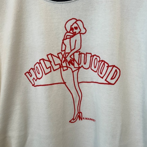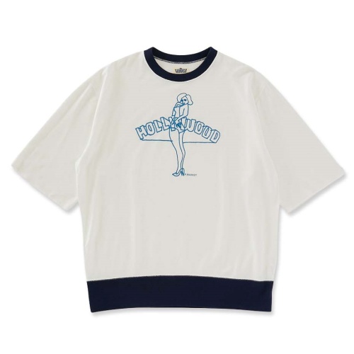 利き手とは逆の手で描き、わざとゆがんだタッチを表現したピンナップガールのTシャツです。レーヨン、キュプラ、ポリエステルをブレンドし、肌触りの心地よい柔らかさを表現したオリジナル裏毛生地です。程よく目を詰めて編み立てることで、適度な強度のある生地に仕上げました。生地の柔らかさを活かした、ゆったりとしたシルエットが適度なドレープ感を表現するリラックスフィットです。