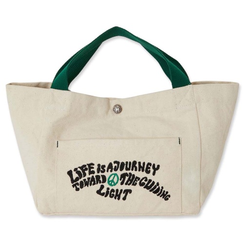定番的なオリジナルロゴを刺繍で表現し施したキャンバスバッグ。ツートンになった持ち手もポイントです。ちょっとしたお出かけの際に持ち運びやすいコンパクトサイズです。